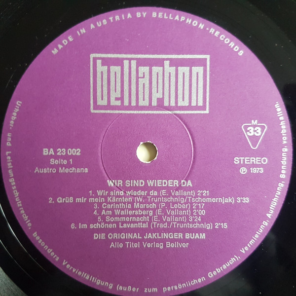 Label: Bellaphon Austria - Cat#: BA 23002
