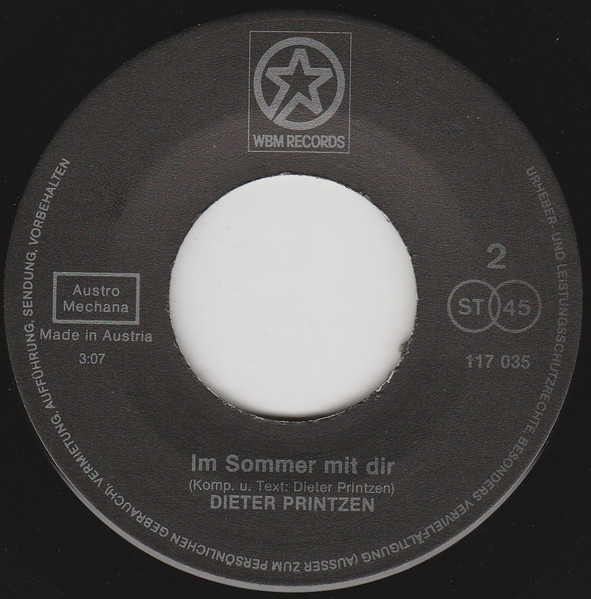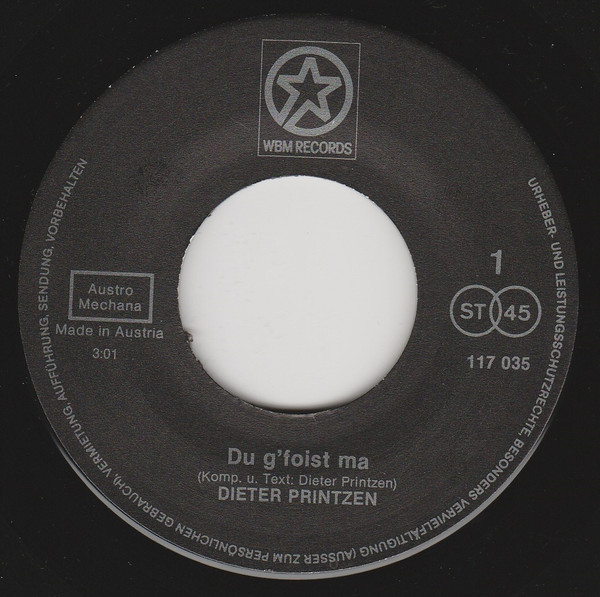 Vinyl / Dieter Printzen - Du Gfoist Ma / Im Sommer Mit Dir