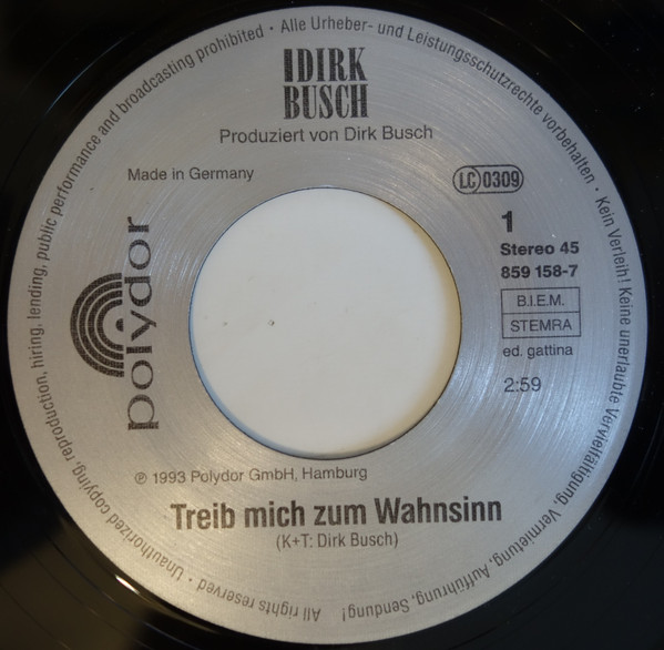 Vinyl / Dirk Busch - Treib Mich Zum Wahnsinn