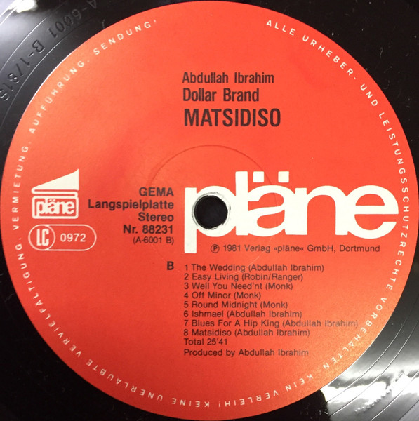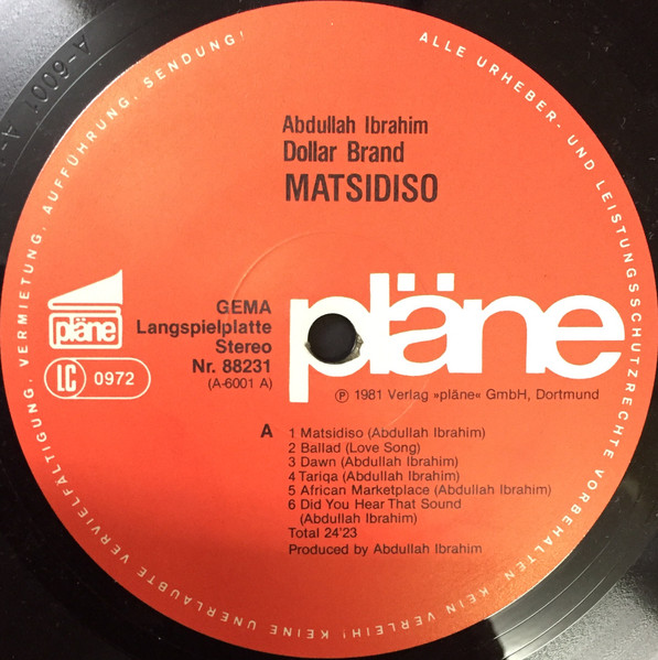 Vinyl / Dollar Brand / Abdullah Ibrahim - Matsidiso (Piano Solo Live)