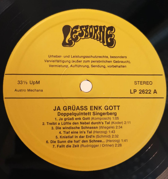 Vinyl / Doppelquintett Singerberg - Ja Grüass Enk Gott
