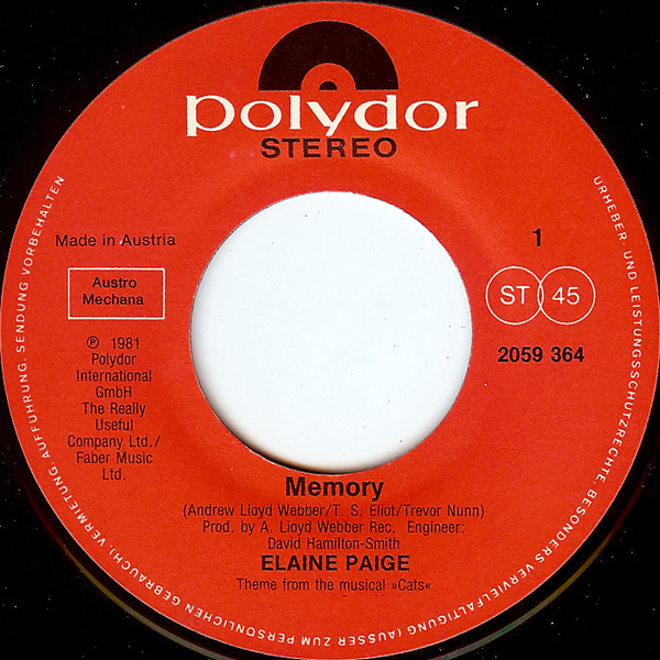 Vinyl / Elaine Paige - Memory (The Theme From Cats)