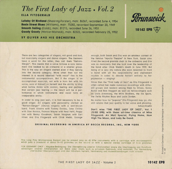 Vinyl / Ella Fitzgerald - The First Lady Of Jazz Vol. 2