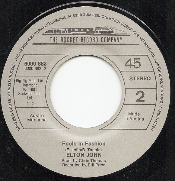 Format: Vinyl, 7", Single, 45 RPM