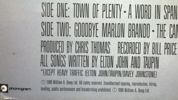 Label: The Rocket Record Company - Cat#: 834 701-1