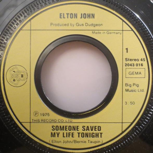 Vinyl / Elton John - Someone Saved My Life Tonight / Lady Samantha