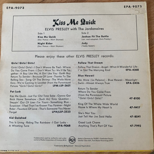 Label: RCA Victor - Cat#: EPA 9073