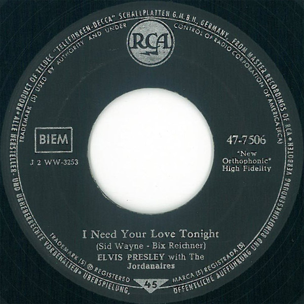 Vinyl / Elvis Presley With The Jordanaires - I Need Your Love Tonight
