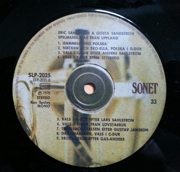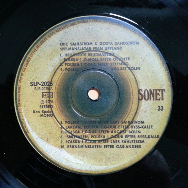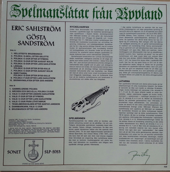 Vinyl / Eric Sahlström, Gösta Sandström - Spelmanslåtar Från Uppland