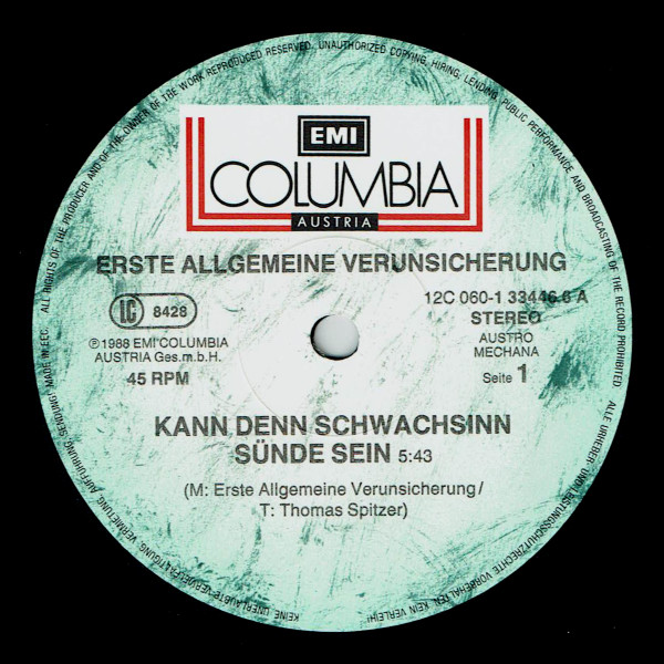 Vinyl / Erste Allgemeine Verunsicherung* - Kann Denn Schwachsinn Sünde Sein...?