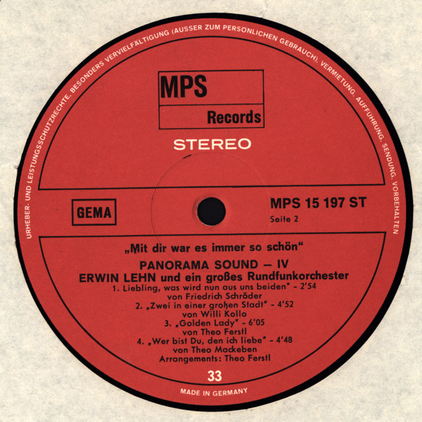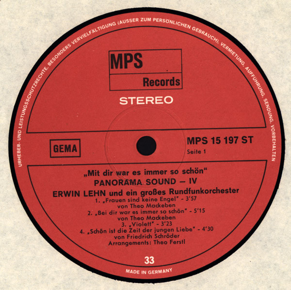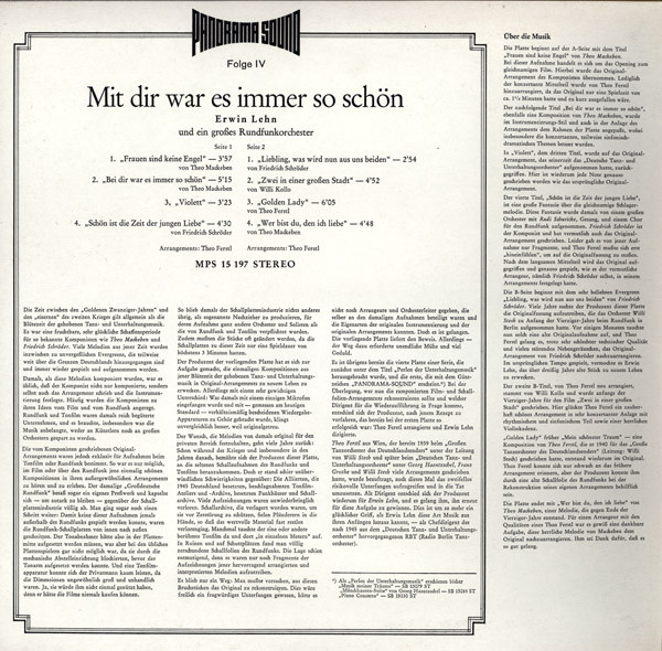 Vinyl / Erwin Lehn Und Ein Großes Rundfunkorchester - Mit Dir War Es Immer So Schön