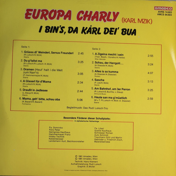 Vinyl / Europa Charly - I Bin's Da Karl Dei' Bua