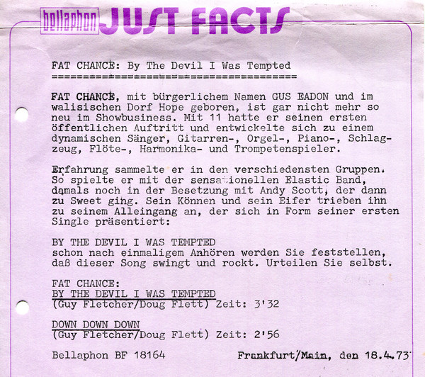 Vinyl / Fat Chance (7) - By The Devil I Was Tempted