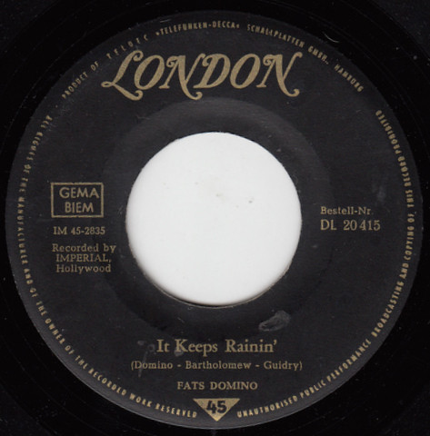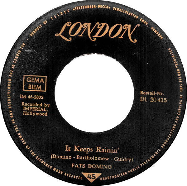 Vinyl / Fats Domino - It Keeps Rainin' / I Just Cry