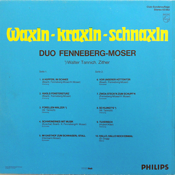 Vinyl / Fenneberg-Moser* - Waxln-Kraxln-Schnaxln (Schihütten-Zauber)