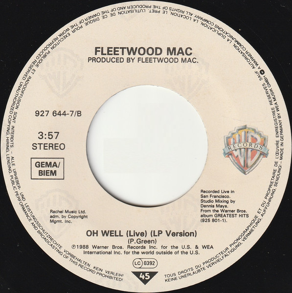 Label: Warner Bros. Records - Cat#: 927 644-7