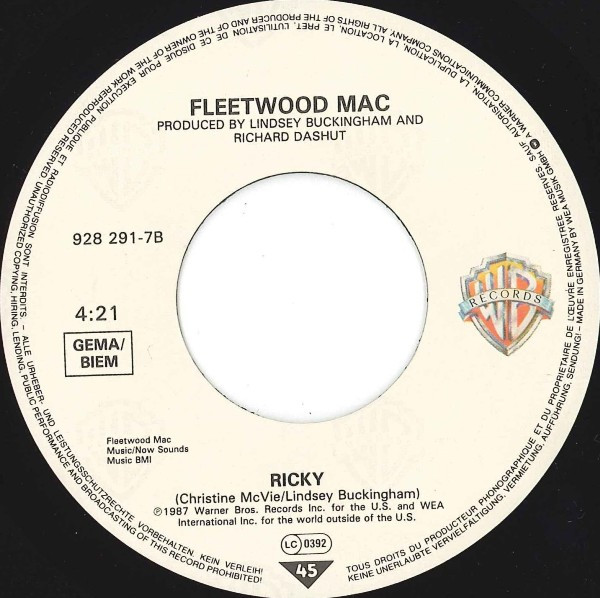 Label: Warner Bros. Records - Cat#: 928 291-7