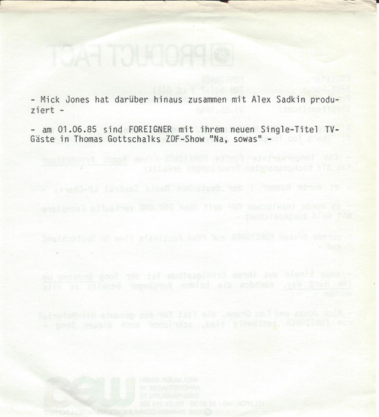 Released: Europe, 1985
