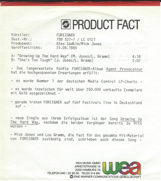 Vinyl / Foreigner - Growing Up The Hard Way