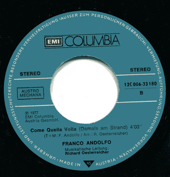 Vinyl / Franco Andolfo - Ciao Amici Ciao / Come Quella Volta (Damals Am Strand)