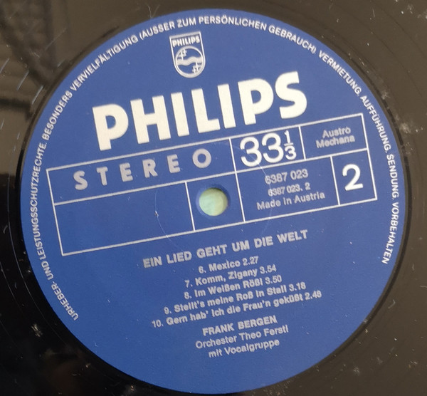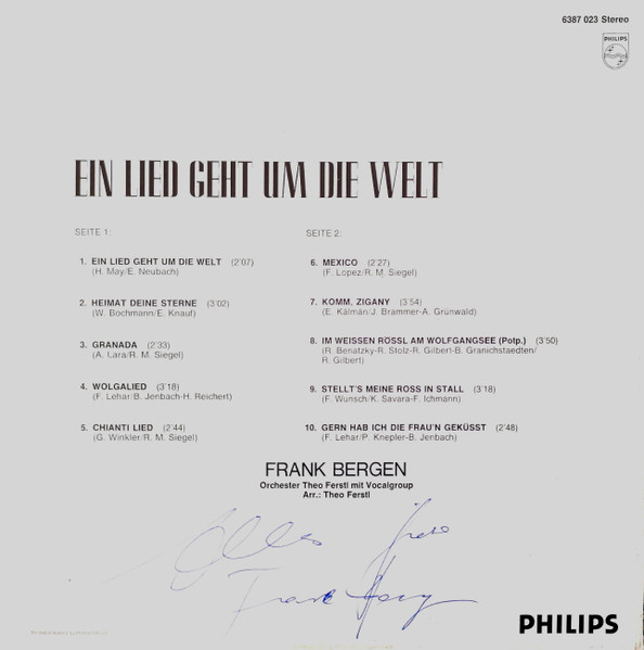 Vinyl / Frank Bergen - Ein Lied Geht Um Die Welt