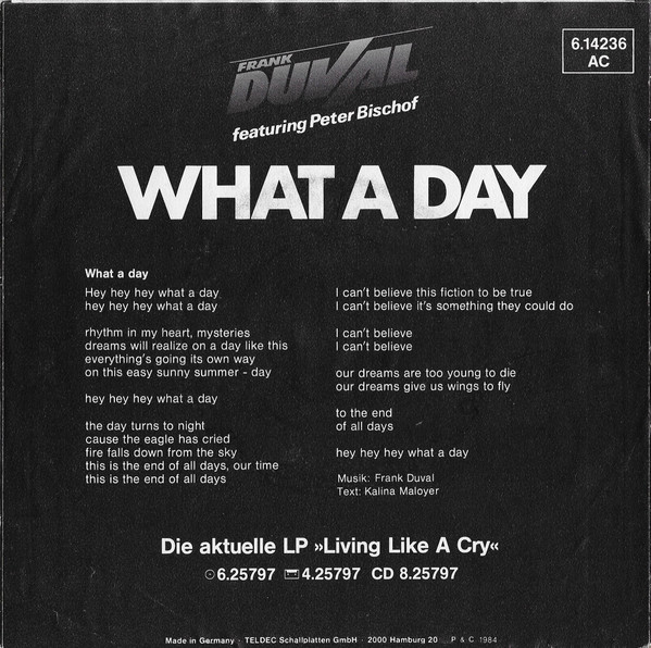 Vinyl / Frank Duval Featuring Peter Bischof - What A Day