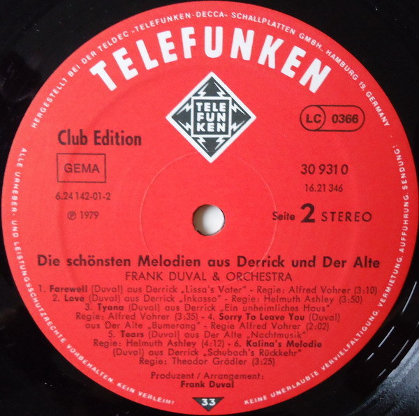 Vinyl / Frank Duval & Orchestra - Die Schönsten Melodien Aus "Derrick" Und "Der Alte"