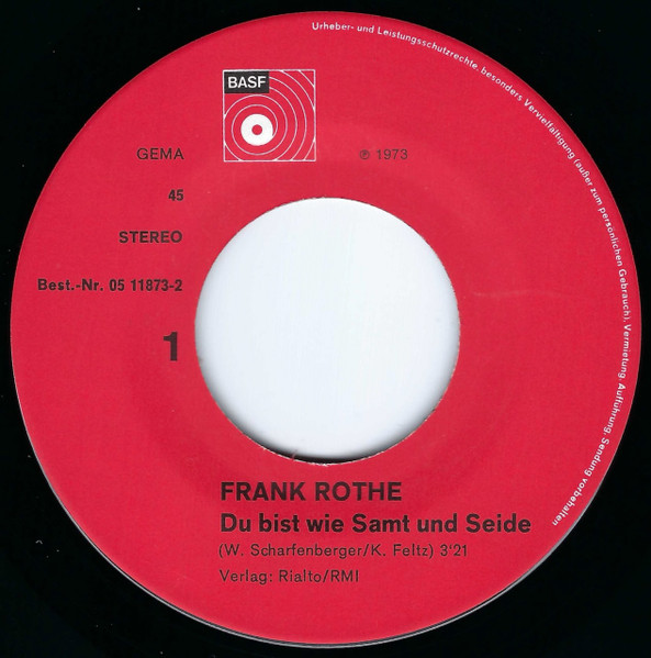 Vinyl / Frank Rothe - Du Bist Wie Samt Und Seide / Die Straße Zu Dir