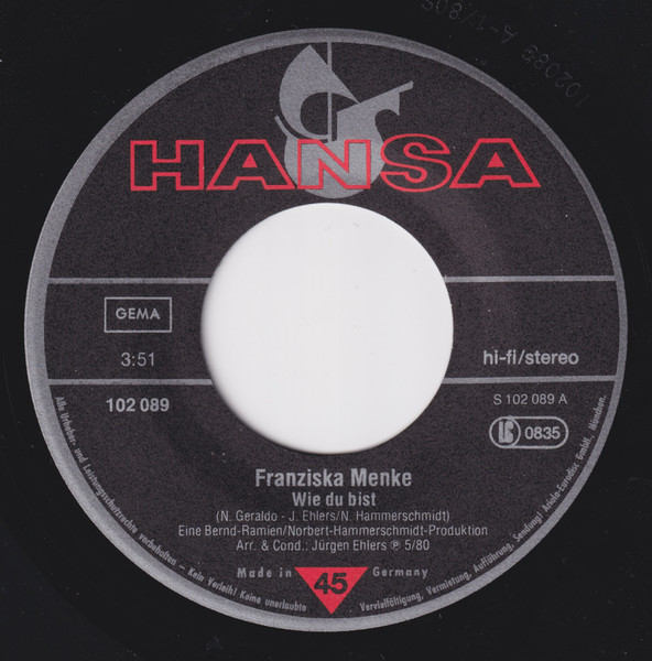 Label: Hansa - Cat#: 102 089