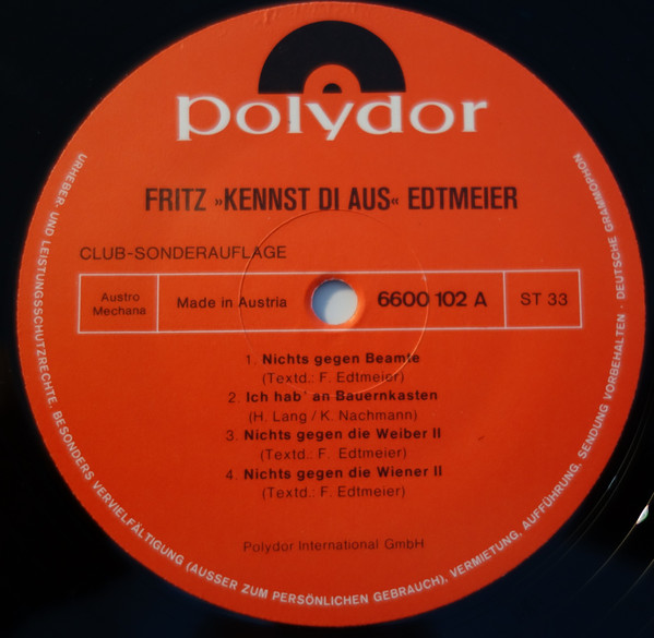 Vinyl / Fritz Edtmeier - Seine Grossen Erfolge