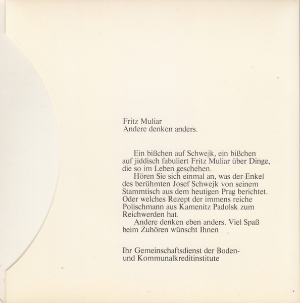 Vinyl / Fritz Muliar - Andere Denken Anders
