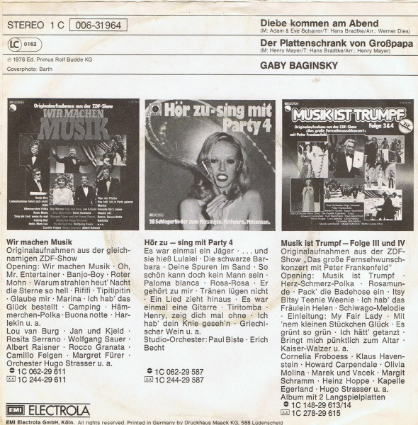 Vinyl / Gaby Baginsky - Diebe Kommen Am Abend / Der Plattenschrank Von Grosspapa
