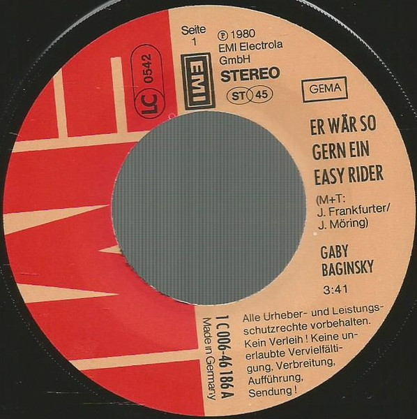 Vinyl / Gaby Baginsky - Er Wär So Gern Ein Easy Rider