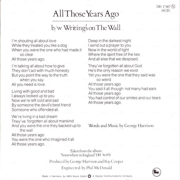 Vinyl / George Harrison - All Those Years Ago