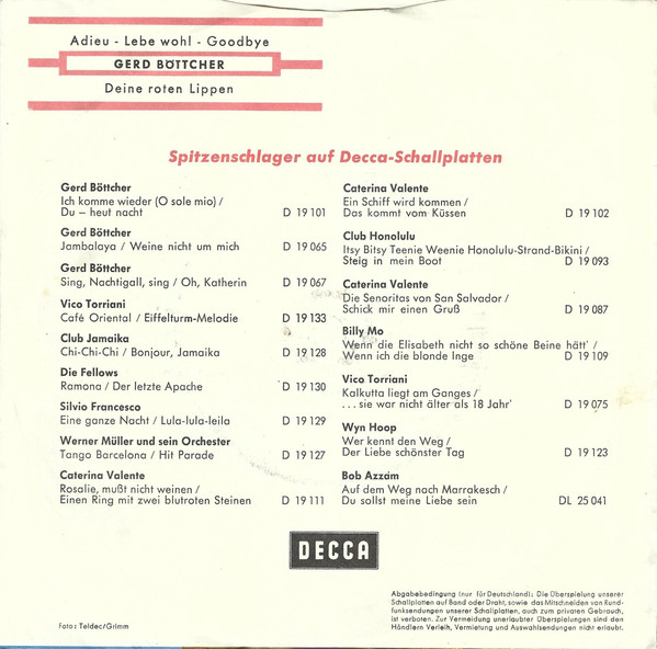 Vinyl / Gerd Böttcher - Adieu, Leb Wohl, Goodbye / Deine Roten Lippen