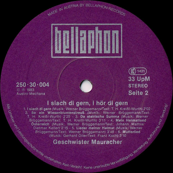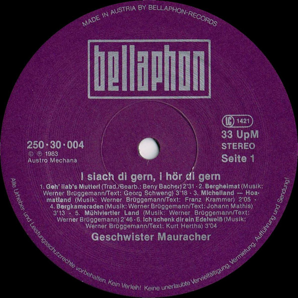 Vinyl / Geschwister Mauracher - I Siach Di Gern, I Hör Di Gern