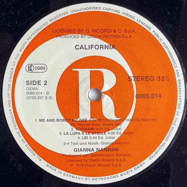 Label: Ricordi - Cat#: 0065.014