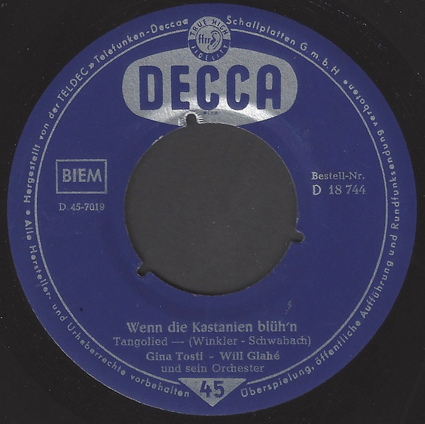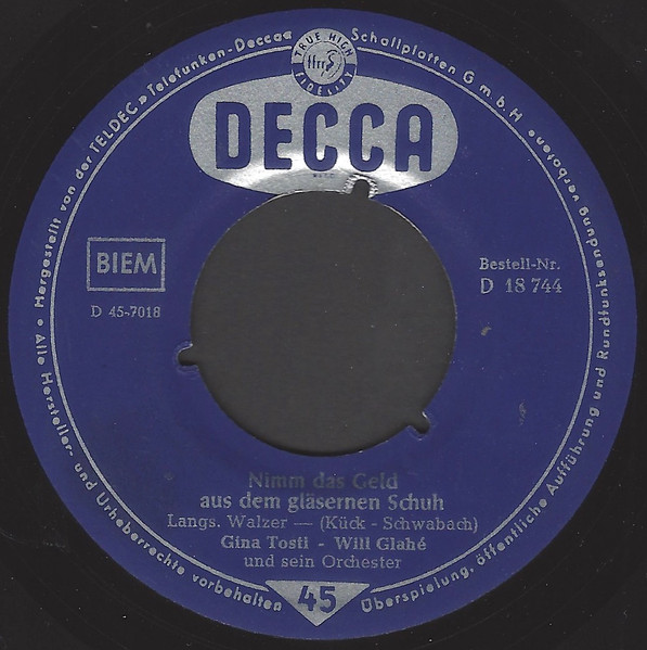 Vinyl / Gina Tosti - Will Glahé Und Sein Orchester - Nimm Das Geld Aus Dem Gläsernen Schuh