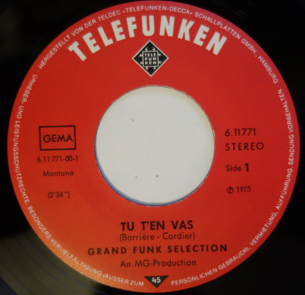 Vinyl / Grand Funk Selection - Tu T'en Vas / Pick Up The Saxes