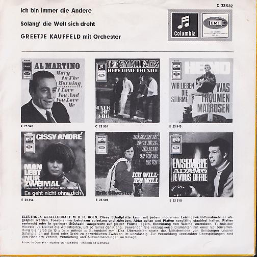 Vinyl / Greetje Kauffeld - Ich Bin Immer Die Andere / Solang Die Welt Sich Dreht