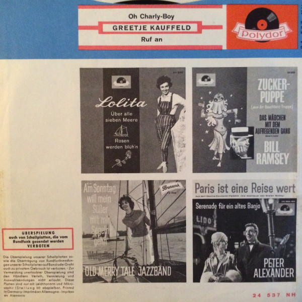 Vinyl / Greetje Kauffeld - Oh Charly-Boy / Ruf An