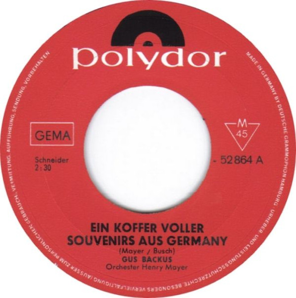 Vinyl / Gus Backus - Ein Koffer Voller Souvenirs Aus Germany
