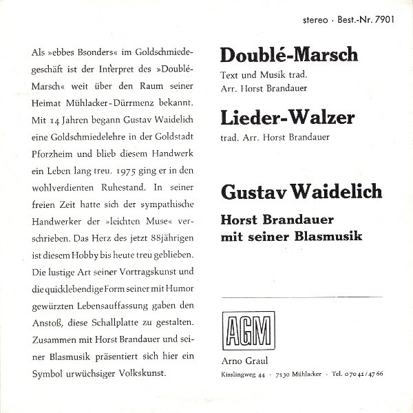 Vinyl / Gustav Waidelich - Doublé-Marsch / Lieder-Walzer