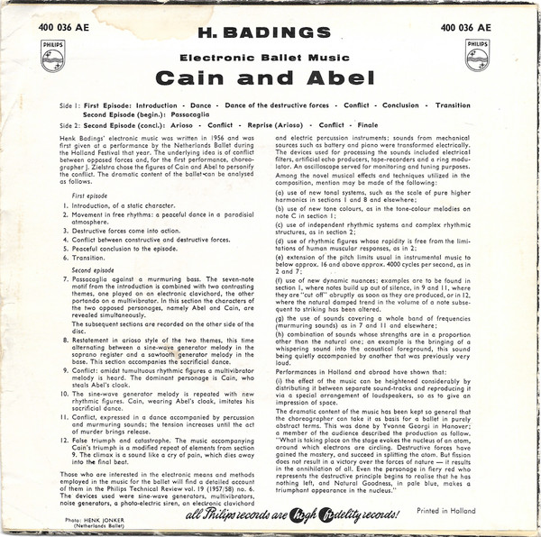 Vinyl / H. Badings* - Electronic Ballet Music "Cain And Abel"