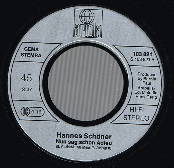 Vinyl / Hannes Schöner - Nun Sag Schon Adieu