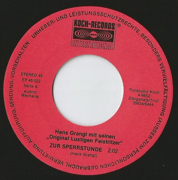 Vinyl / Hans Grangl Mit Seinen Orig. Lustigen Feistritzer* - Zur Sperrstunde