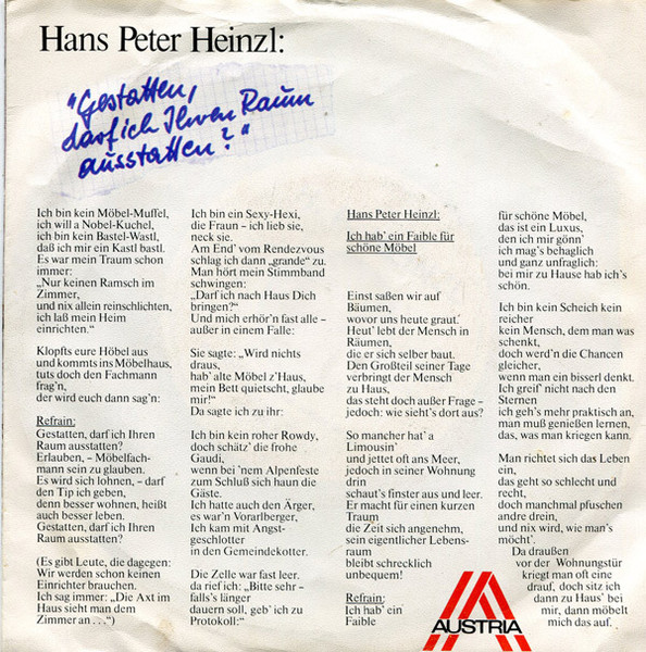 Vinyl / Hans Peter Heinzl - Gestatten Darf Ich Ihren Raum Ausstatten?