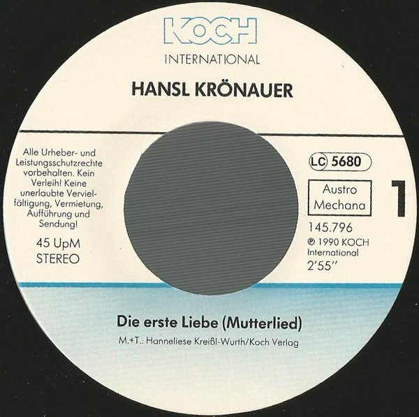 Vinyl / Hansl Krönauer - Die Erste Liebe (Mutterlied)