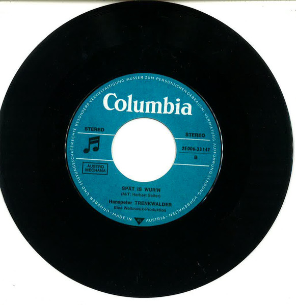 Vinyl / Hanspeter Trenkwalder - Aner Tramway Und An Madl Rennt Ma Net Nach