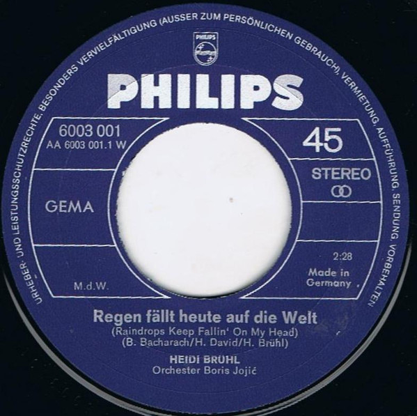 Vinyl / Heidi Brühl - Regen Fällt Heute Auf Die Welt (Raindrops Keep Fallin' On My Head)